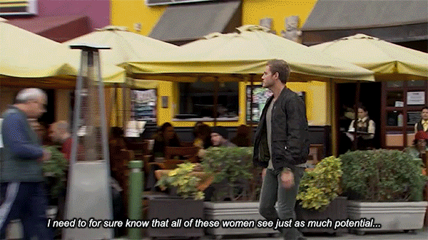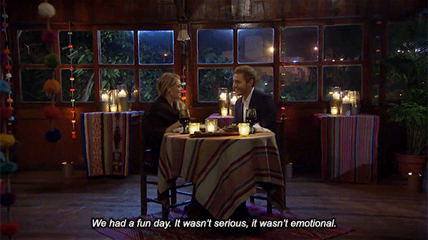 YUP. This once again addresses Peter’s “fear” and pinpoints one of the many reasons why this is just as difficult and scary (albeit in a different way) for any woman with legitimate feels for him. This “suspension” especially occurs when Peter presses the women for confirmation that they are indeed into him, instead of letting that unfold as the women are comfortable and ready. (As most leads in the past have done.) It’s like polling the room for a specific answer but then being like, “OK, don’t call me, I’ll call you.” All they can do is wait.